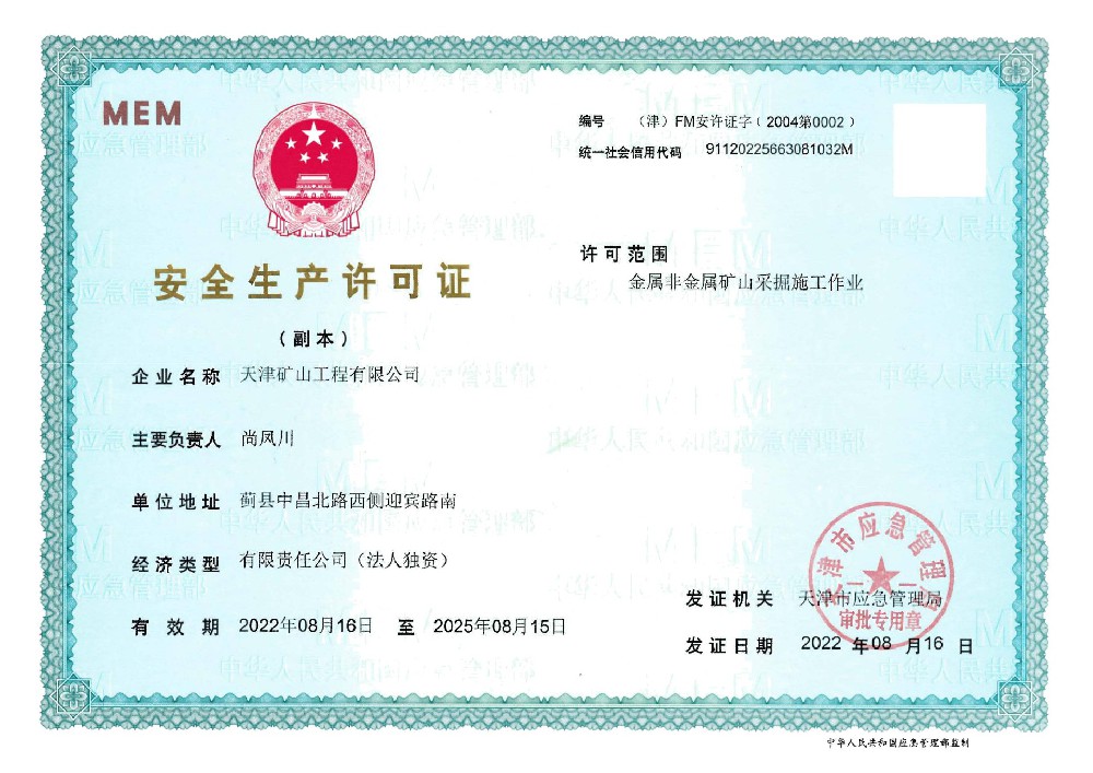 爆破作業(yè)單位許可證(營(yíng)業(yè)性)
