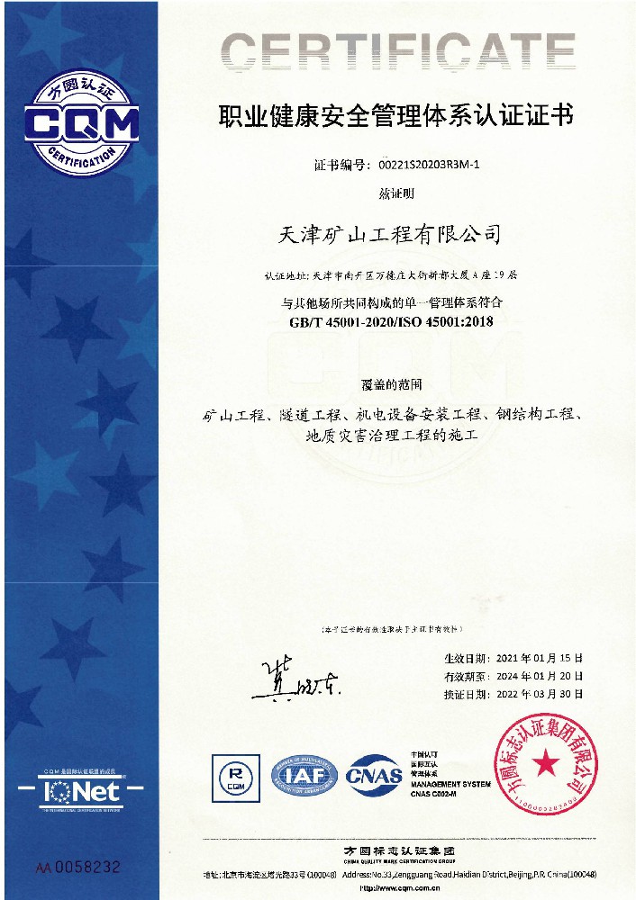 職業(yè)健康安全管理體系認(rèn)證證書(shū)